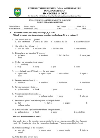 Untuk kunci jawaban sudah kami tandai dengan penebalan kalimat ( bold ) di setiap soal. soal uts pai pendidikan agama islam kelas 6 semester 1. Materi fisika kelas 10 : Cek juga paket pelajaran dari bimbel online zenius education. Download soal uts/pts tik kelas 10 semester 2.